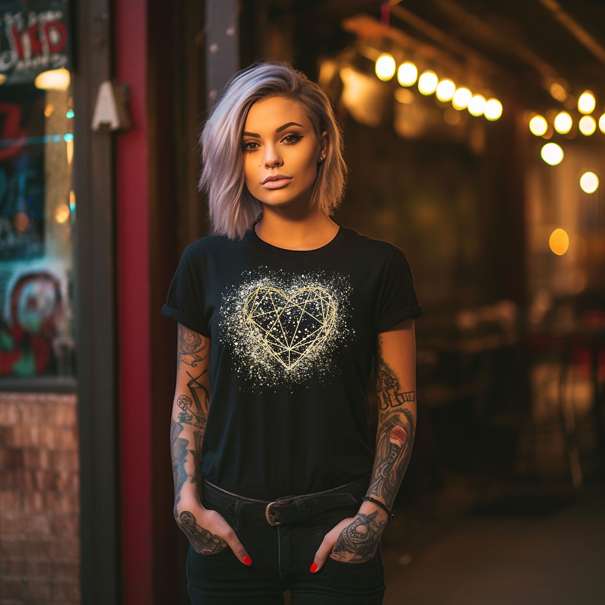 Damen T-Shirt goldenes Herz