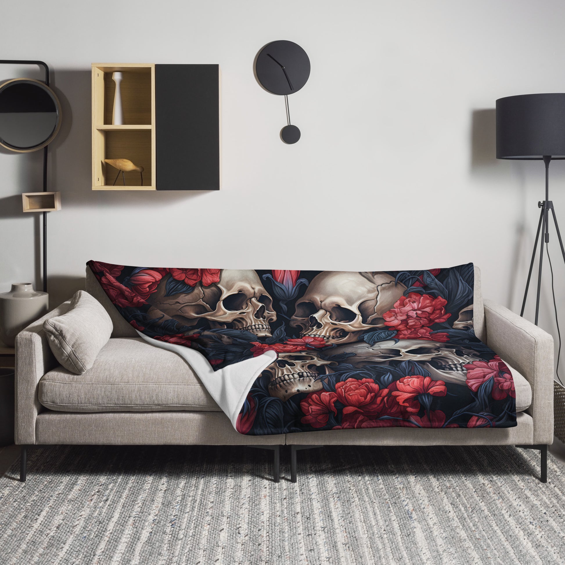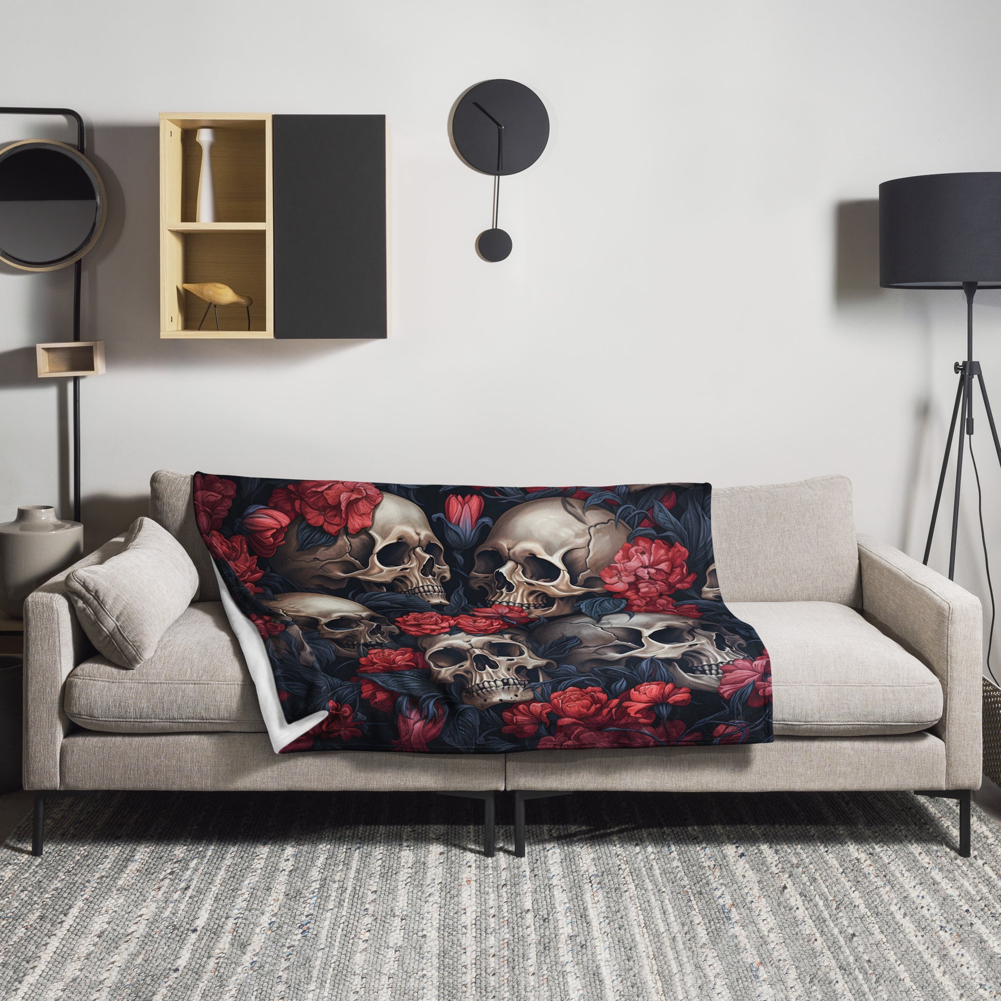 Kuscheldecke Schädel und Blumen 3